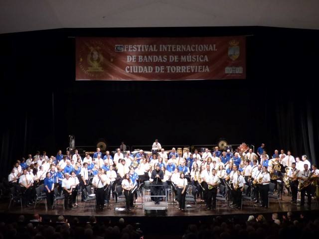 Actuaron en conjunto, como si de una gran banda se tratase, los 170 musicos de las tres que han tomado parte en el festival: la Banda de Conciertos de Irlanda del Norte, la de Loureiro (Portugal) y la anfitriona y organizadora Sociedad Musical Ciudad de Torrevieja-Los Salerosos. Las tres agrupaciones demostraron una gran compenetración en obras como 'Mar i Bel' de Ferrer Ferrán o 'Centenarium', obra del primer trompeta de la banda de Loureiro, Hernani Periz.